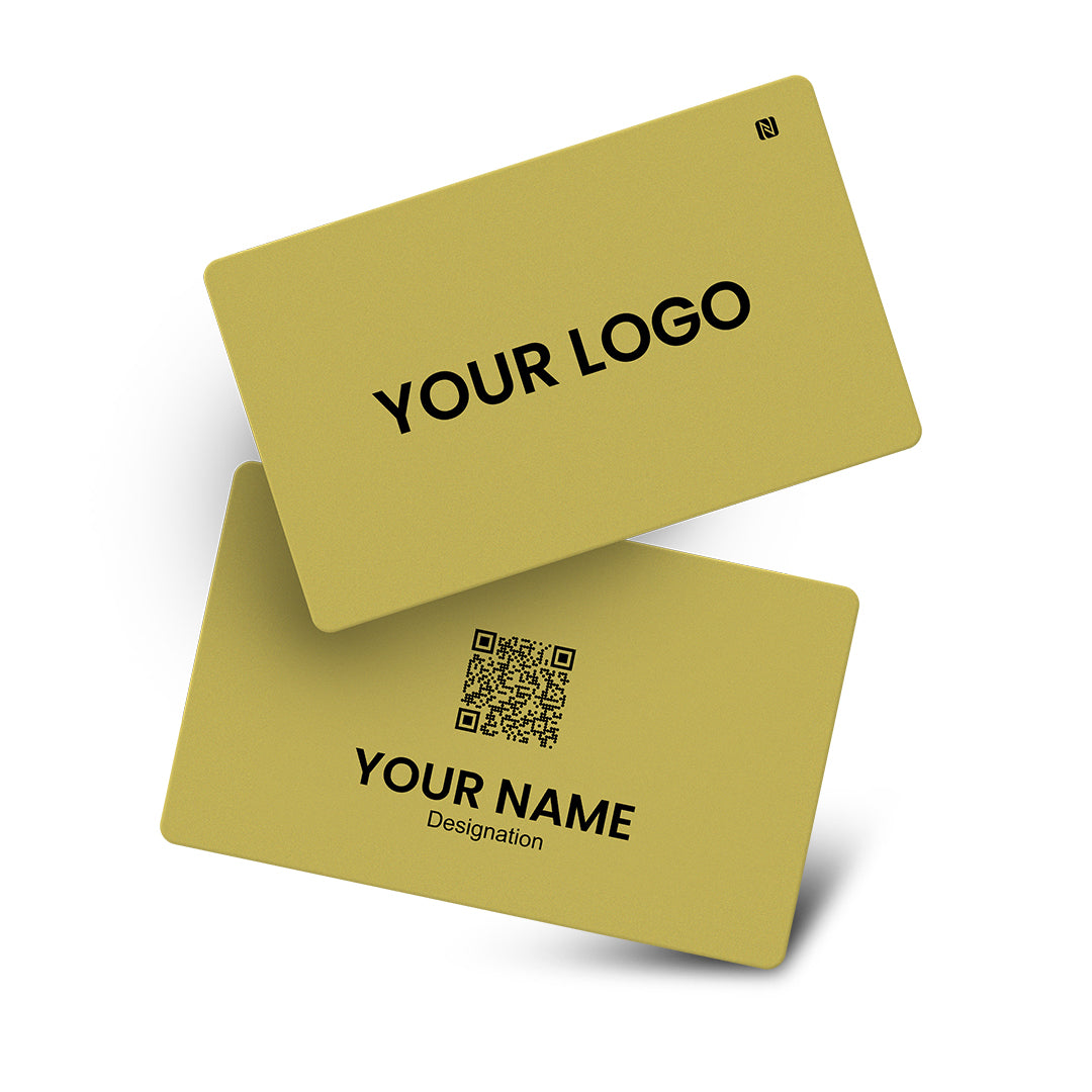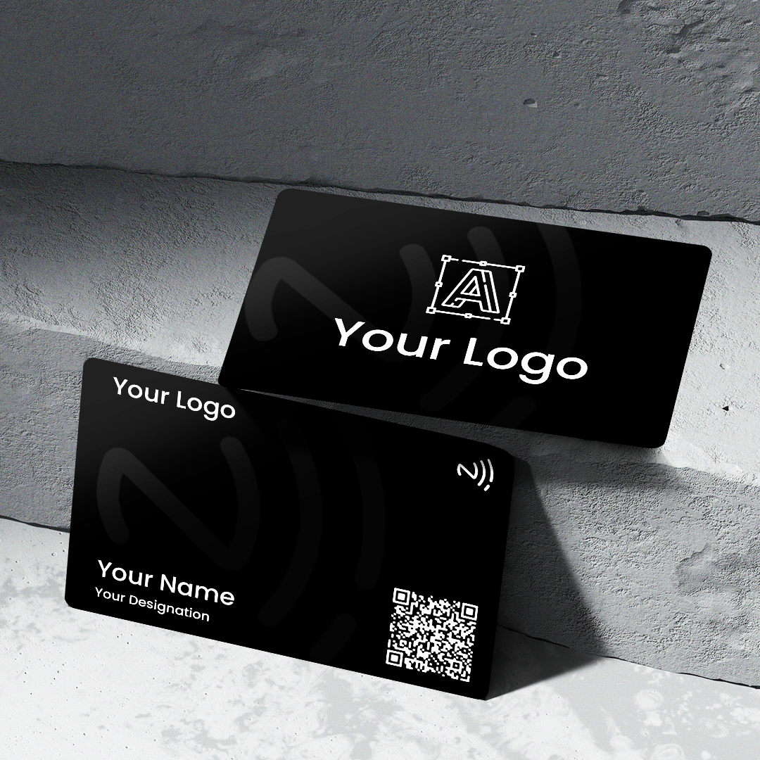 A smart business card is a physical card that contains a small chip that can be read by NFC (Near Field Communication) enabled devices. This chip allows you to store and share your personal and professional information with others simply by tapping your card against their device.