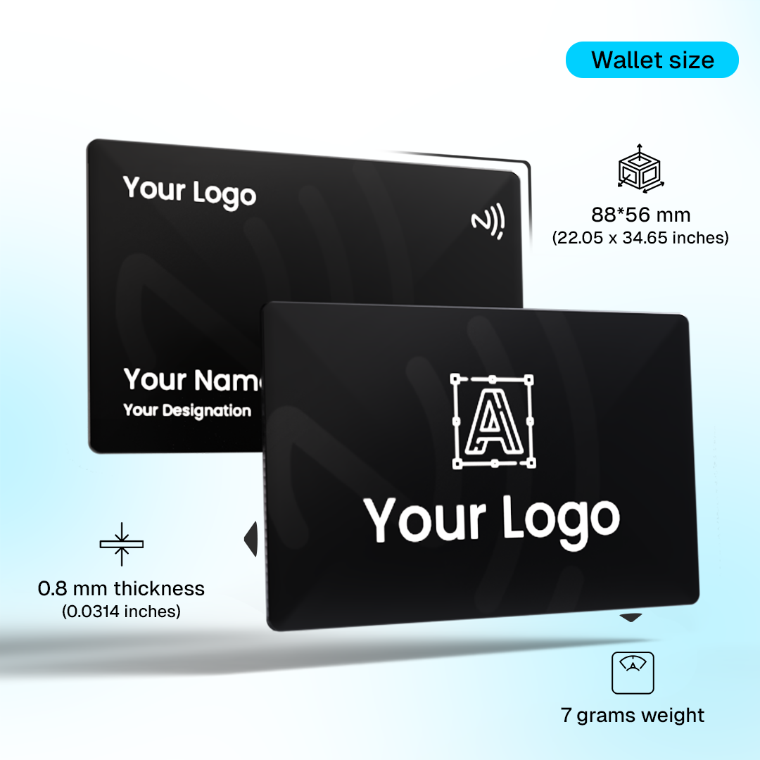 An NFC business card is a physical card that contains an NFC chip, allowing you to share your contact details with others by tapping your card against their device.